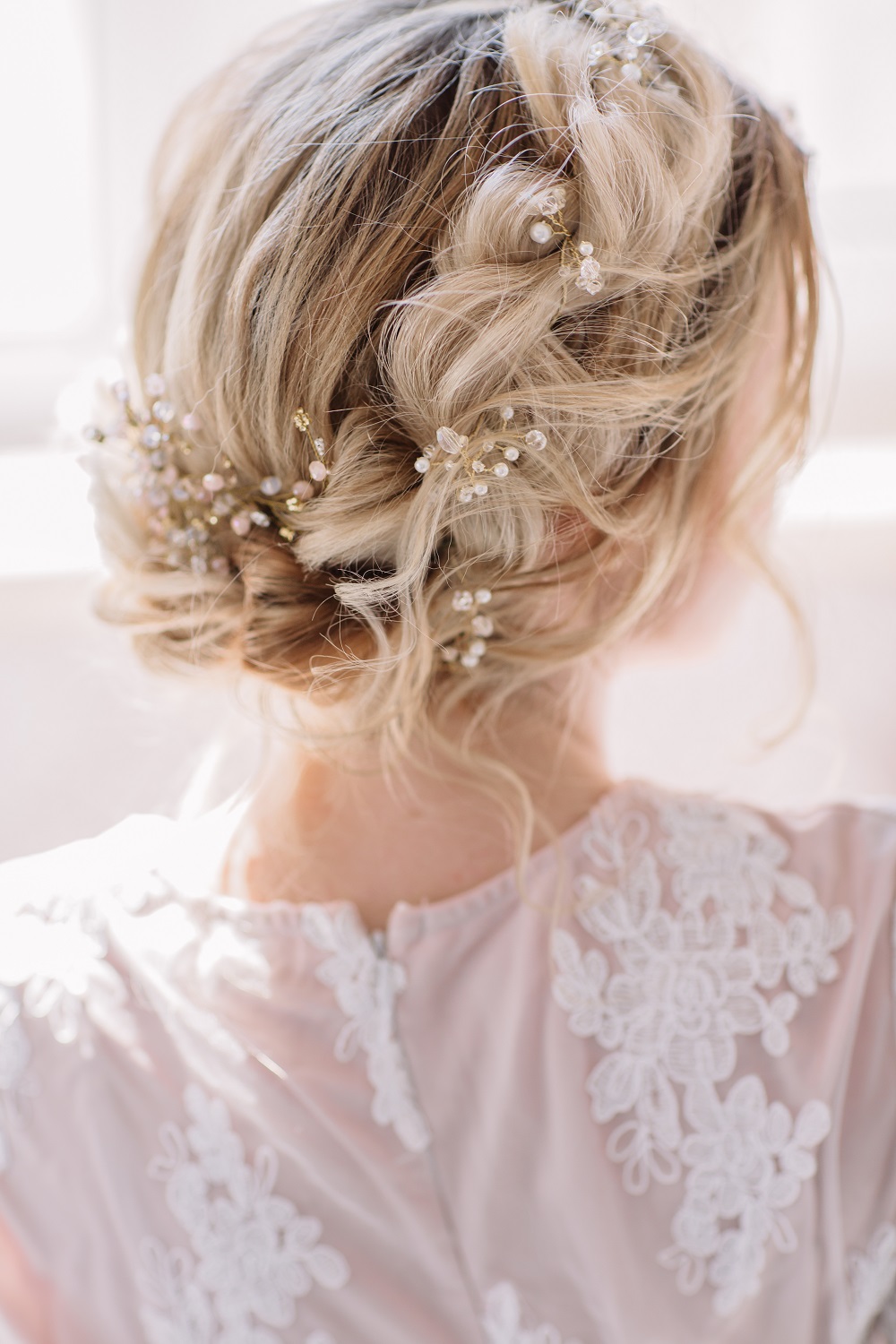 Demandez à votre coiffeuse d'ajouter ces jolies perles chignon à votre coiffure (à retrouver sur notre boutique partenaire).
